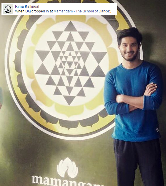 Today actress Rima Kallingal had posted a photo in her Facebook page which has Dulquer Salmaan standing at her dance school named Mamangam. She said that it was taken Dulquer came to her dance school today. But she did not told that for what purpose he had come there. He wore a blue T-Shirt and Black track Suit and looks like came there to practice dance than came for formal visit. From that moment the rumor is spreading in Facebook that Dulquer Salmaan is playing the role of a dancer in Amal Neerad film which he is doing next and he had come there at Mamangam to study dance from the dancing school.